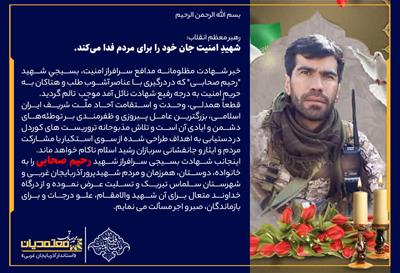 استاندار آذربایجانغربی در پی شهادت بسیجی سرافراز شهید رحیم صحابی پیامی صادر کرد.