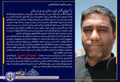 استاندار آذربایجانغربی در پی شهادت سرباز گمنام امام زمان(عج) شهید مهدی اثنی عشری، پیامی صادر کرد.
